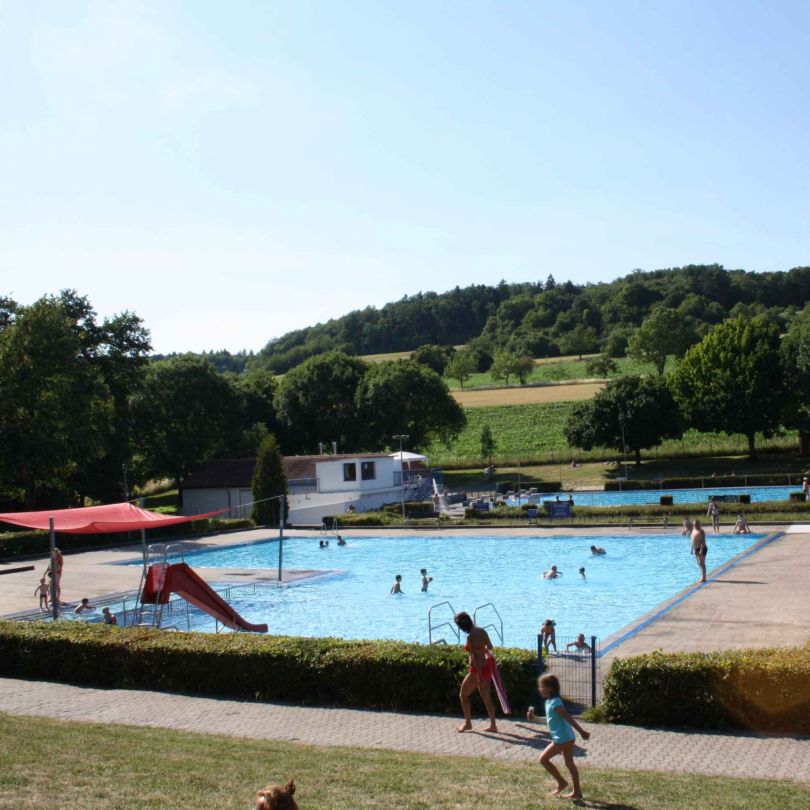 Het gemeentezwembad grenzend aan de camping beschikt over een 50 meter bad en een groot kinder-en peuterbad met een glijbaan voor de kleintjes. De baden worden gevuld met natuurlijk bronwater.
